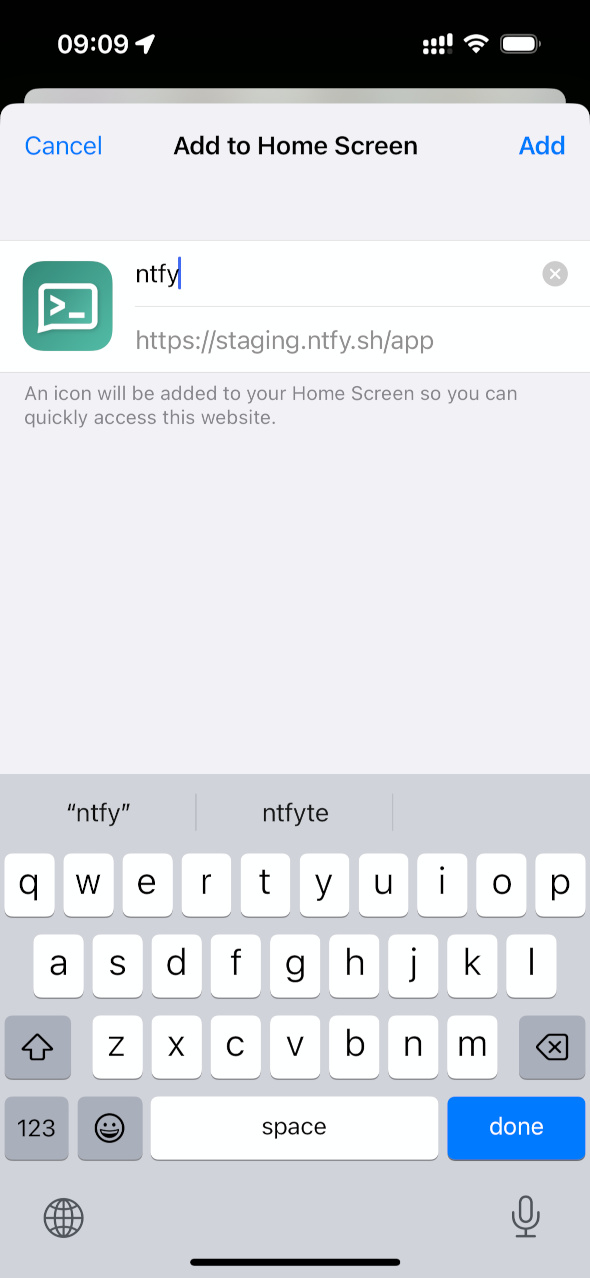 On iOS Safari, tap on the Share menu, then tap "Add to Home Screen":