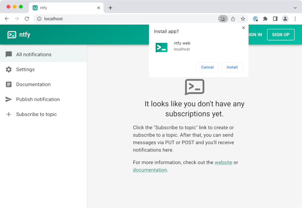While ntfy doesn't have a native desktop app, it is built as a progressive web app (PWA) and thus can be installed on both desktop and mobile devices.
